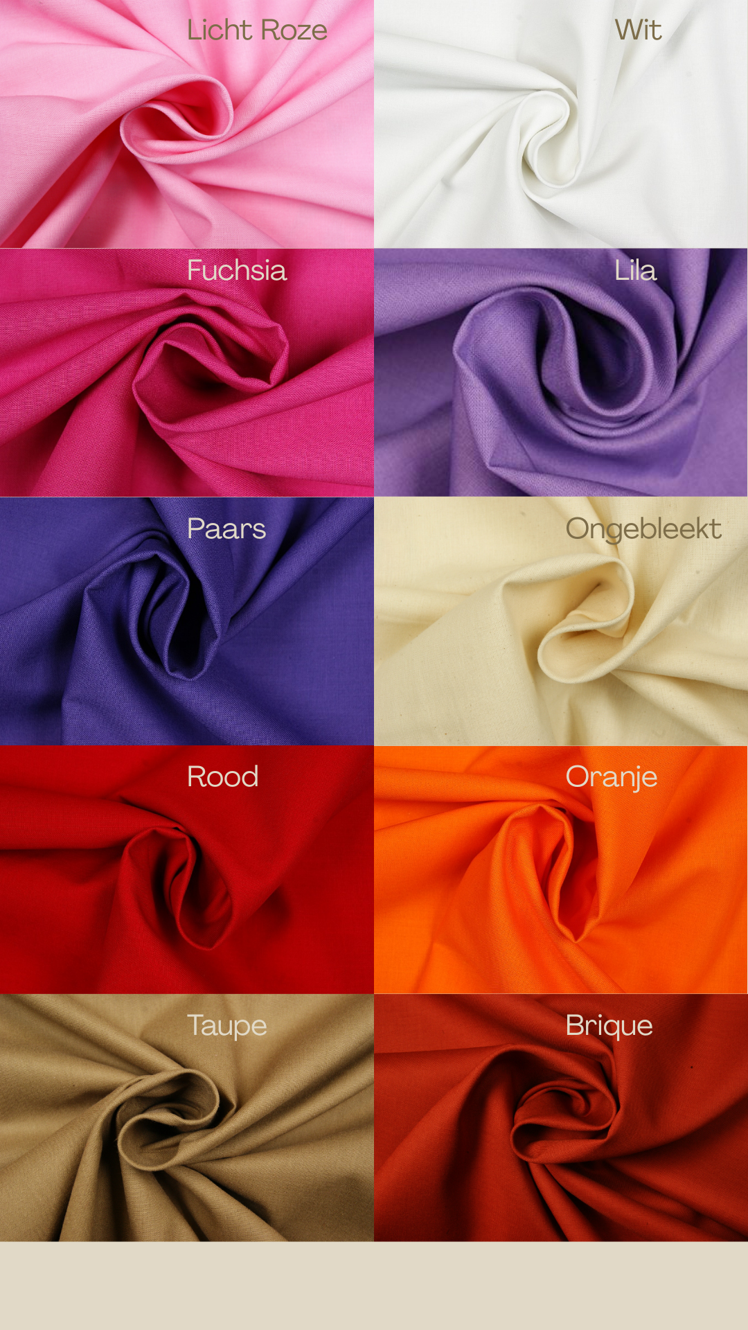 Hieronder vind je een overzicht van alle mogelijke kleuren voor de strookjesslingers. Standaard lengte is 5 meter